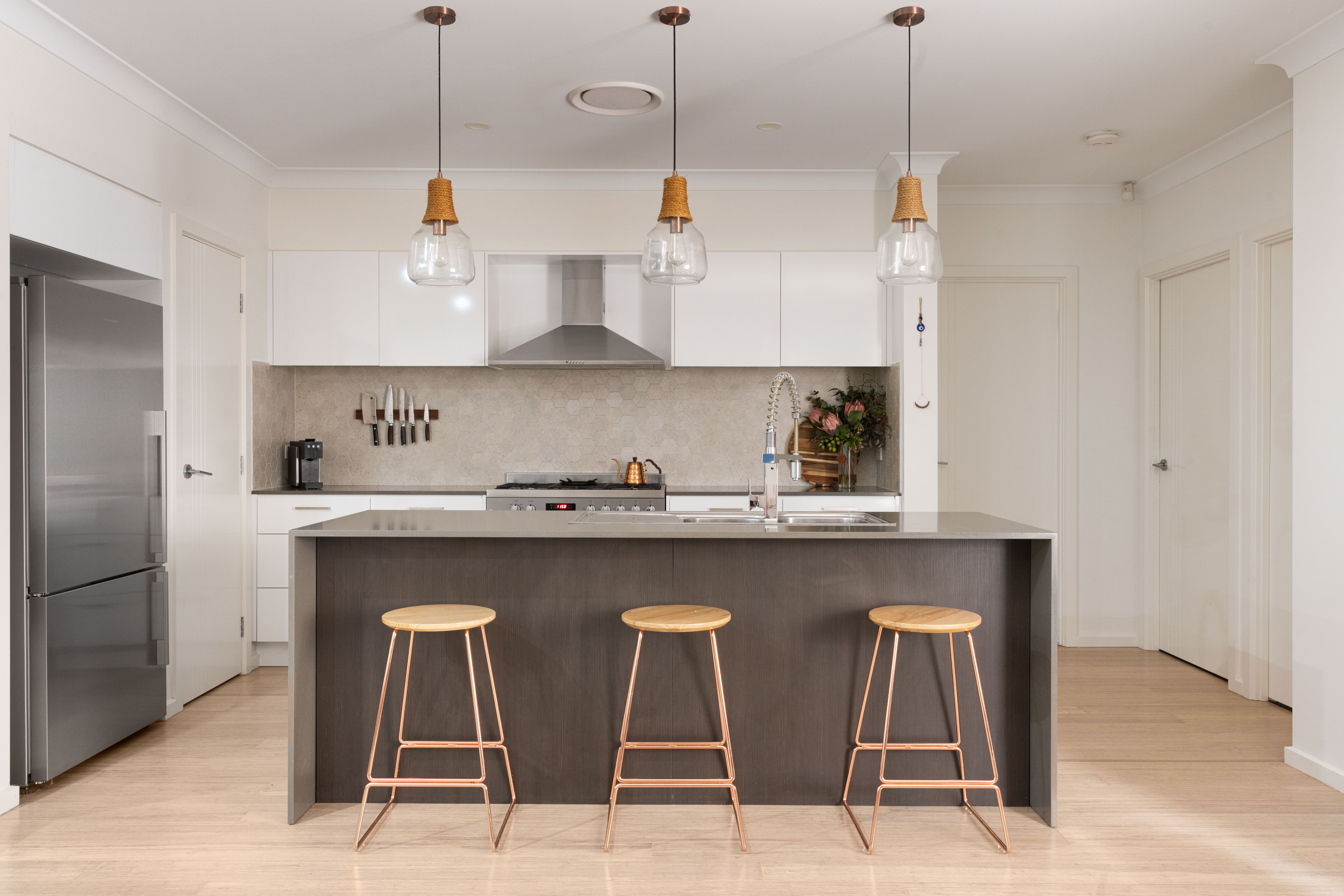 - A stunning kitchen with stone benchtops, 900mm cooking appliances and pantry
