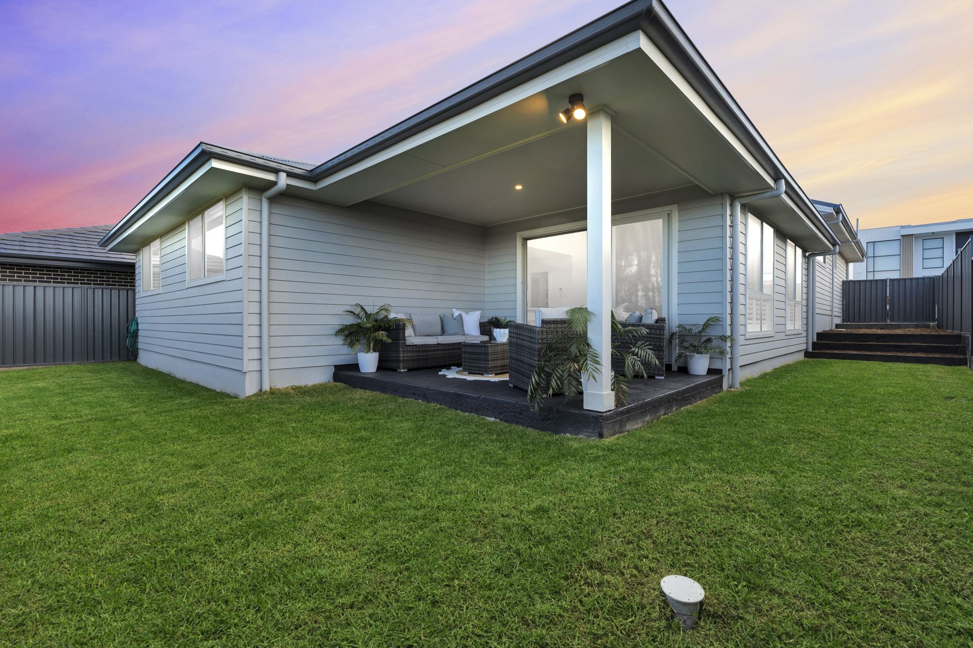 Double remote control garage, a low maintenance front and backyard and rainwater tank