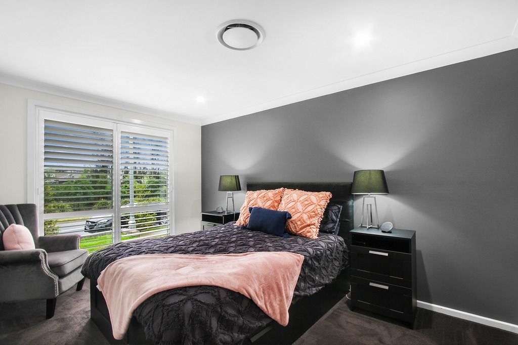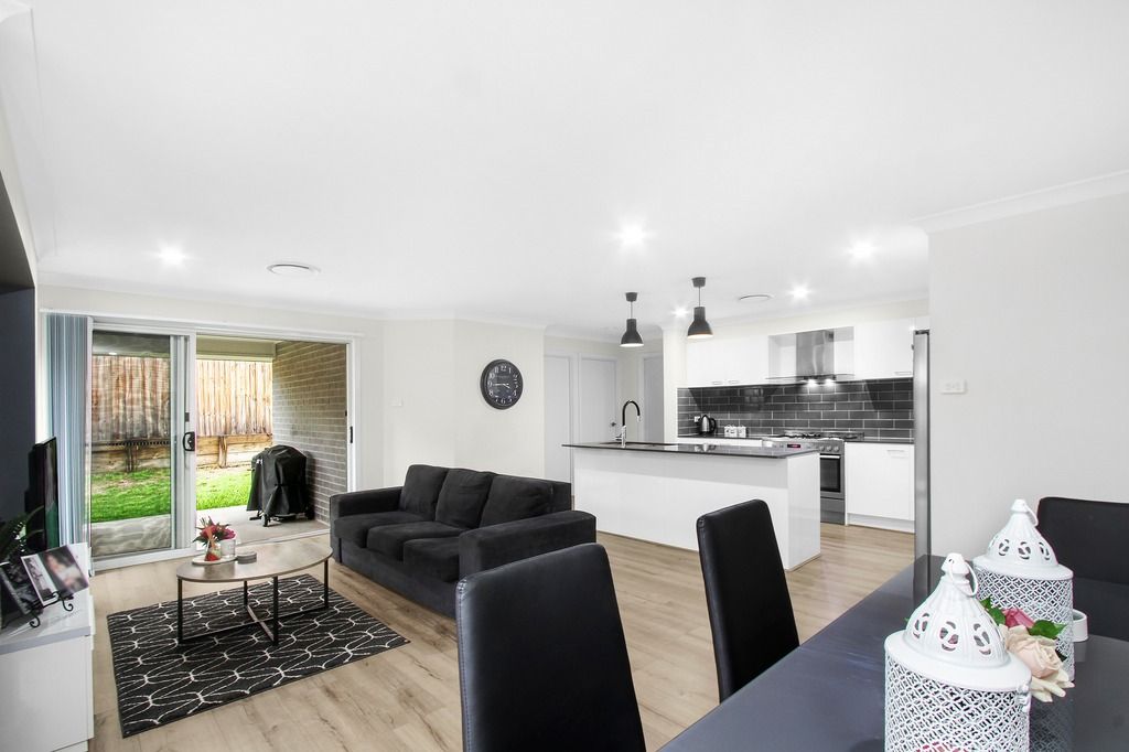 This great quality home is situated in popular Elderslie, close to Camden, by-pass access and Narellan CBD. Offering 4 bedrooms, main with walk in robe, ensuite and plantation shutters. All other bedrooms have built in robes and are of good size. Media room, centrally located kitchen with stone bench tops, stainless steel appliances with large oven and 5 burner gas stove top, dishwasher and walk in pantry. Open plan living with dining and lounge room leading out to the rear alfresco area which is great for entertaining and a neat fully fenced backyard. Other features include main bathroom with bath, ducted air conditioning, double garage with internal access and automatic door, plenty of linen cupboard storage and floating timber floors throughout pen plan living spaces. [Less]