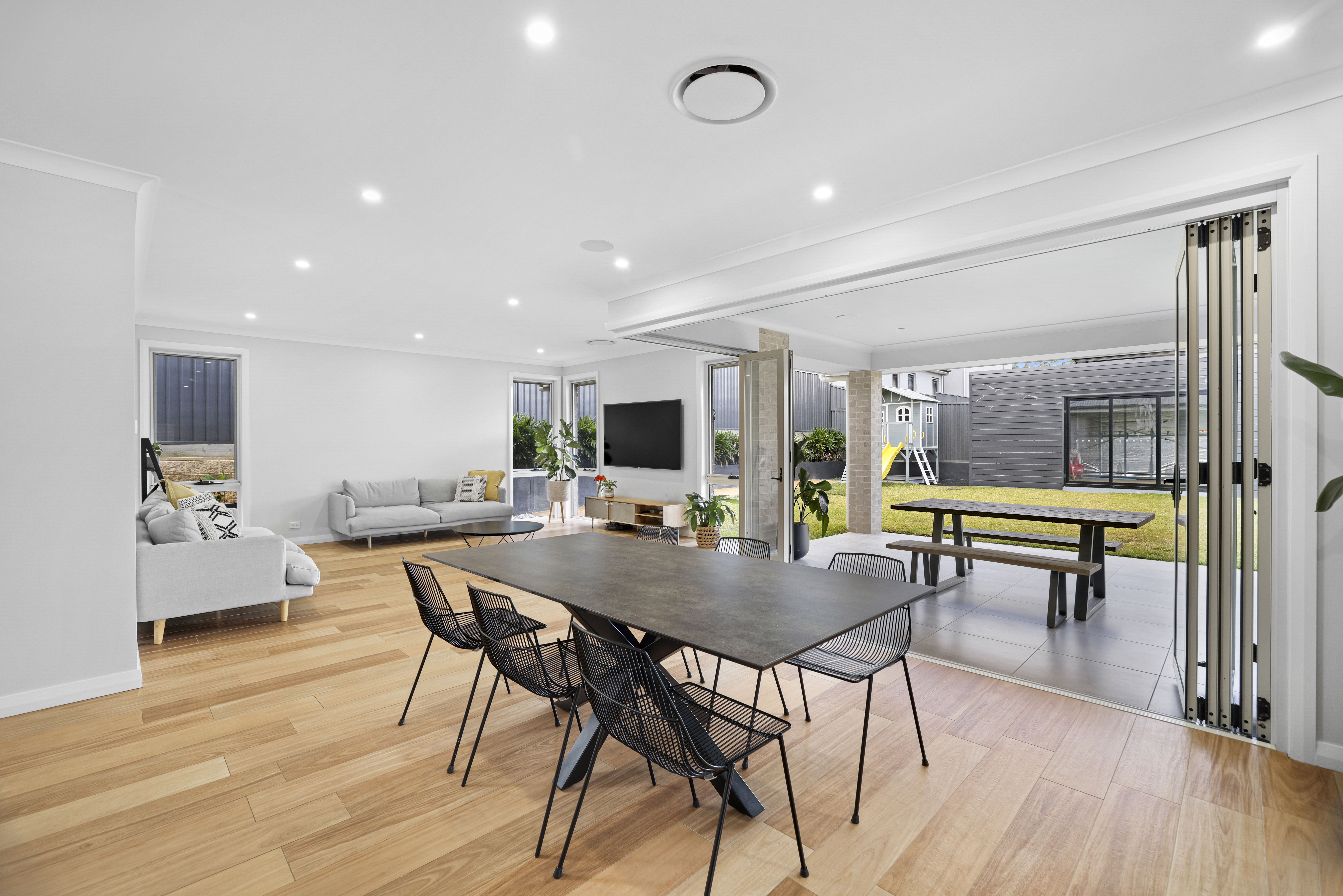 - Living and dining flows seamless to outdoor area via bifold doors