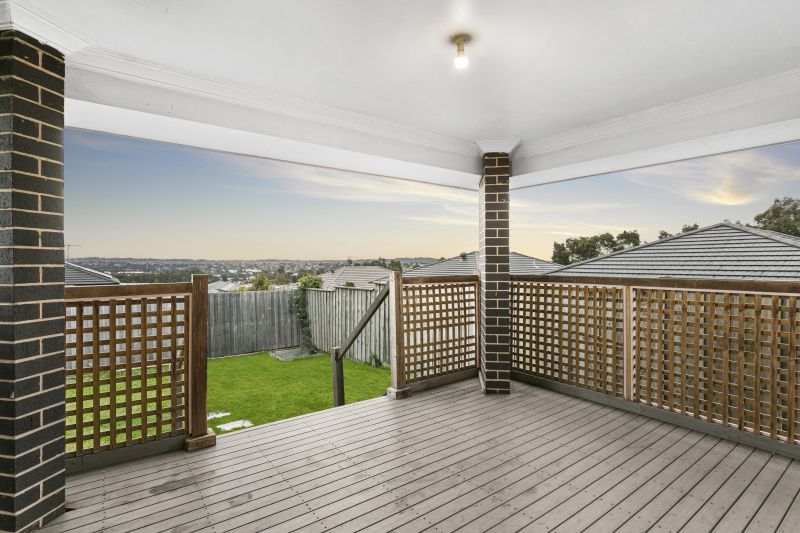 This spacious family home ticks all the boxes. Spanning over 2 levels, the home boasts open plan dining and family living areas plus a separate lounge room. The large kitchen has quality appliances and a huge walk in pantry for plenty of storage. Upstairs there are four double bedrooms, main with walk in robe, ensuite and balcony. One other bedroom has a walk in robe and the rest have large built in robes. A great sized lounge room upstairs and a study downstairs give the home additional living and space for the whole family. Alfresco deck at the rear, large yard and great district views. Double garage with auto doors and internal access, an alarm for your security and ducted air for your comfort. Great position, close to shops, public transport, schools and train.