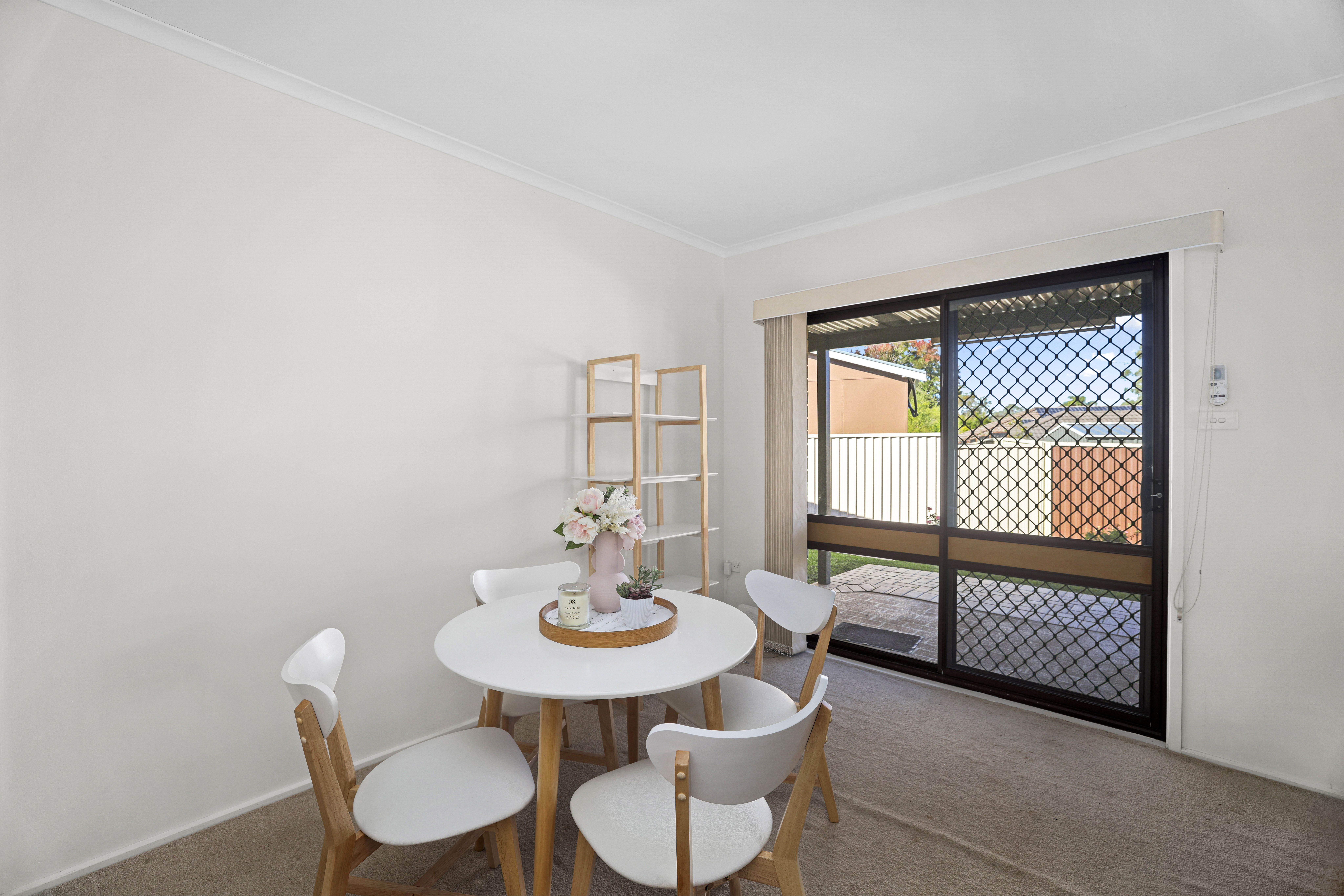 - Open plan living and dining room with split system air conditioning
