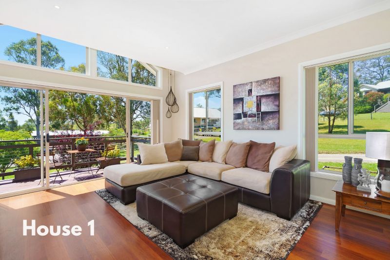 Secluded within the desirable and prestigious Stonequarry Estate, this stunning property presents excellent living possibilities for two families or investment/income generating potential while offering over an acre of land. Dual homes showcasing highest quality and built to exacting standards with tall windows, allowing light and warmth into the homes.
