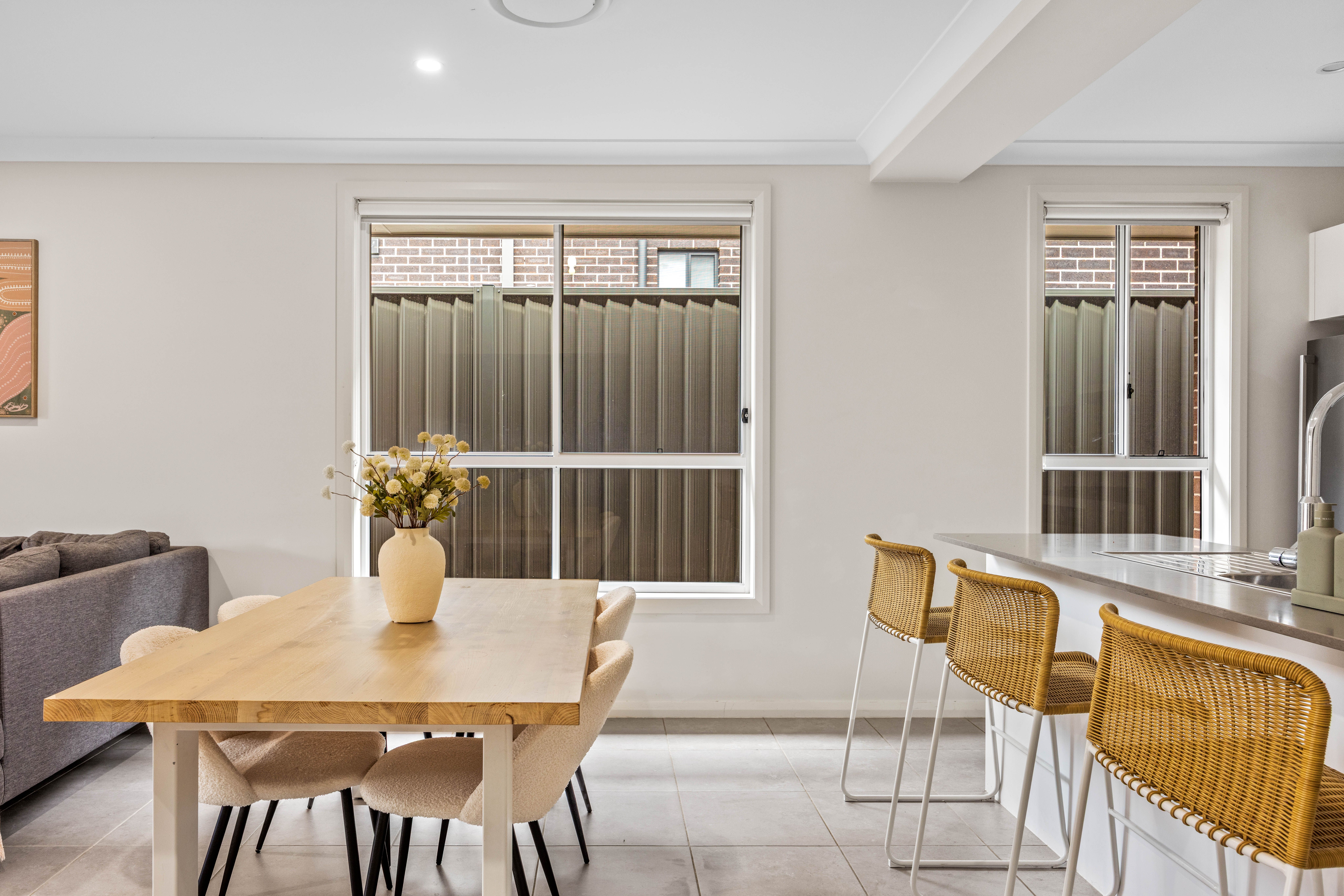 At the heart of the home, the open-plan kitchen, dining and living area creates an inviting atmosphere perfect for both everyday living and effortless entertaining. The stylish kitchen boasts stone benchtops, a double sink, Westinghouse gas cooktop and oven, Dishlex dishwasher, soft-close cabinetry and a spacious pantry, catering perfectly to the modern household. Downlights, a gas bayonet and seamless flow to the outdoor area make this central space warm, functional and family-friendly.