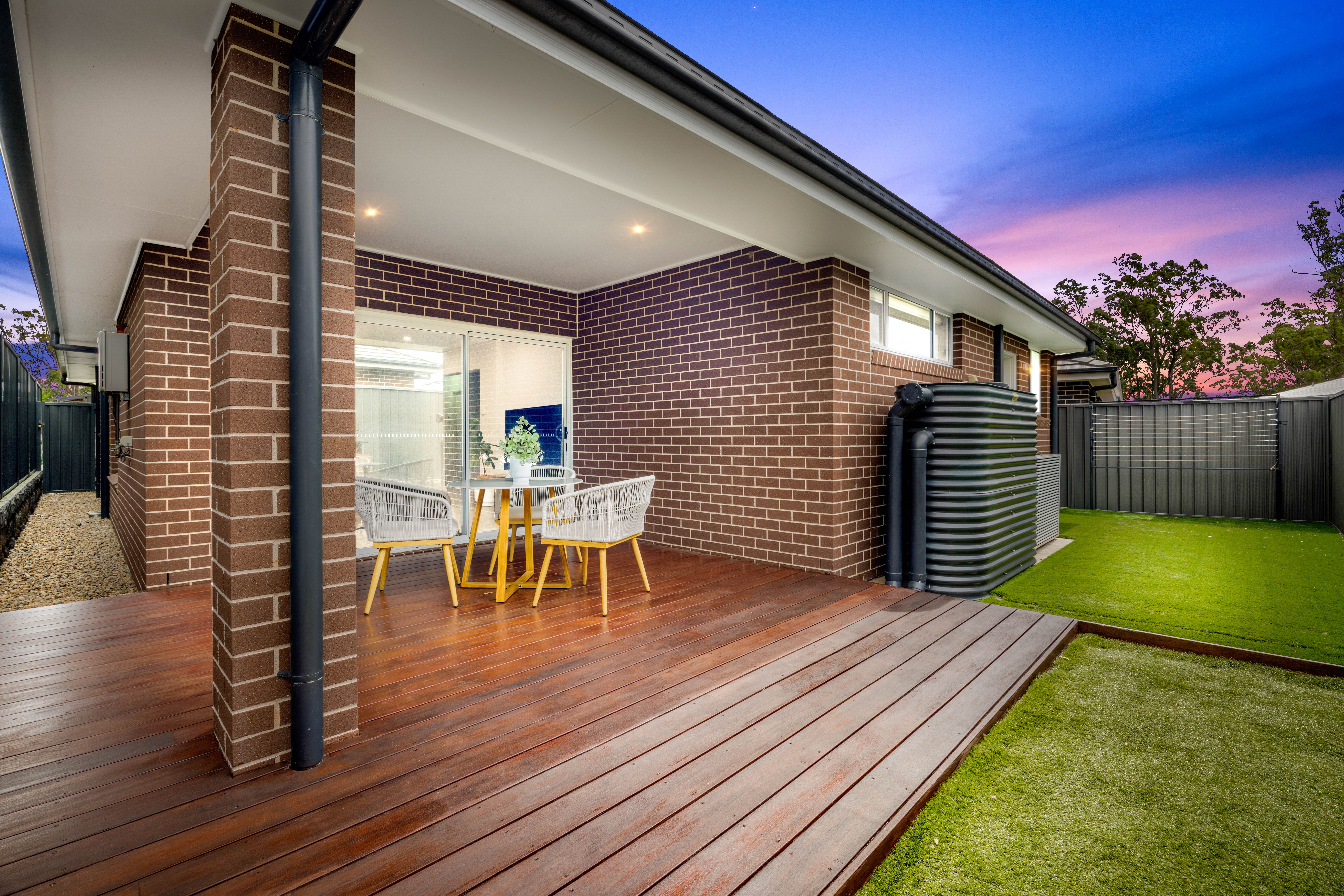 Step outside to an impressive alfresco deck, ideal for year-round gatherings with its outdoor gas bayonet and relaxed seating space. The easy-care synthetic turf, Colorbond fencing, rainwater tank and tidy landscaping provide a clean and private outdoor environment with minimal upkeep required.