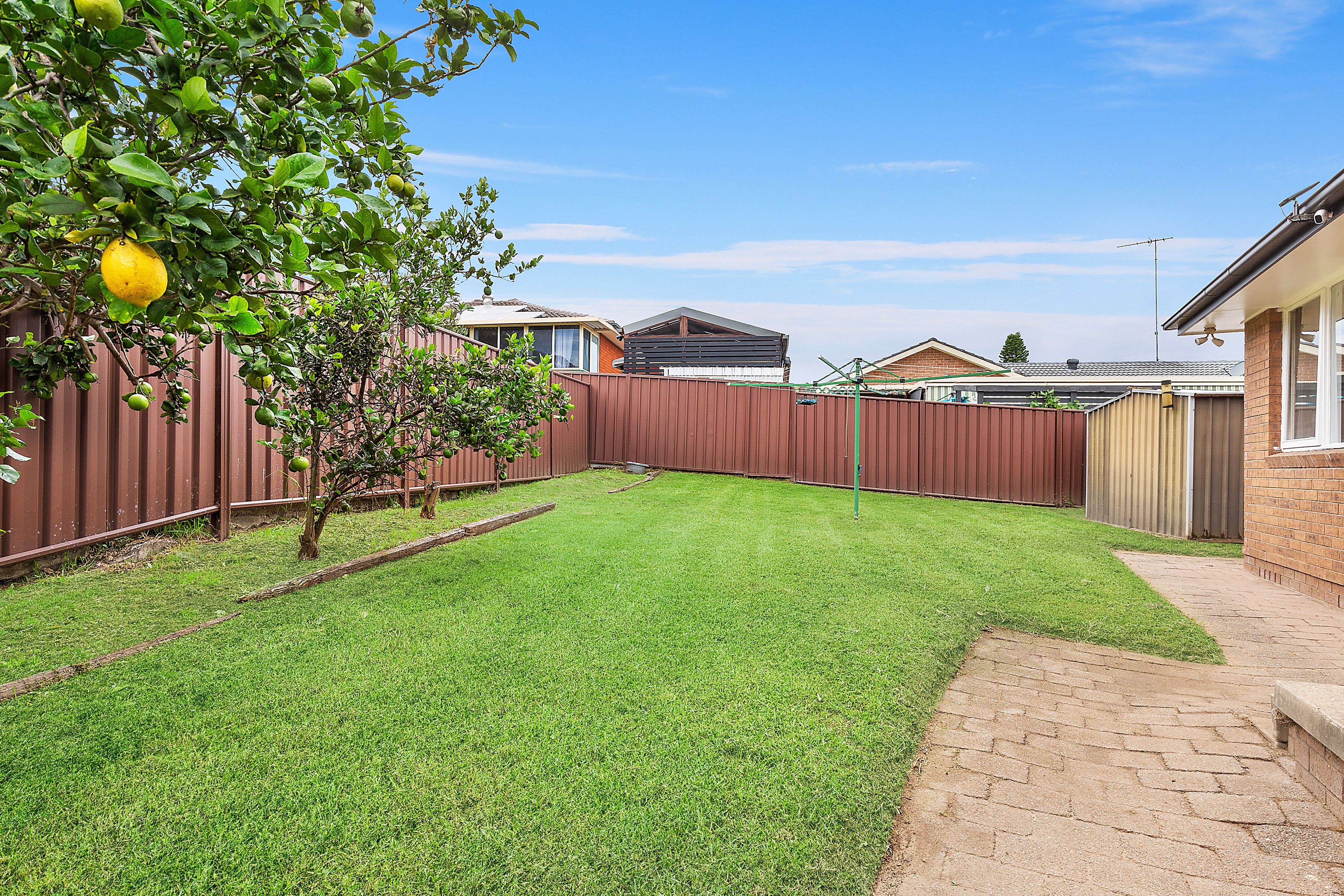 - Garden shed and neat, low maintenance yard with fruit trees at the back