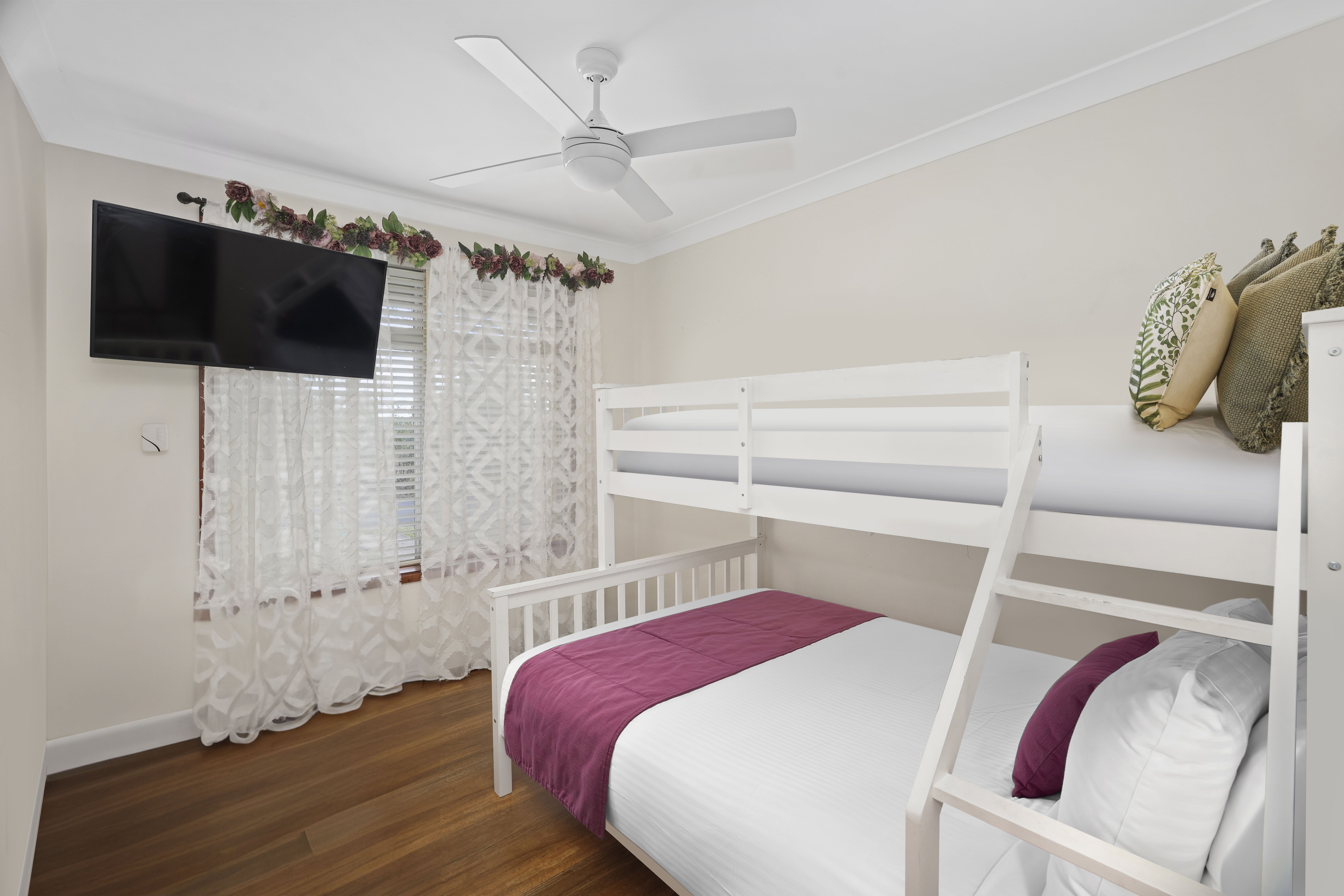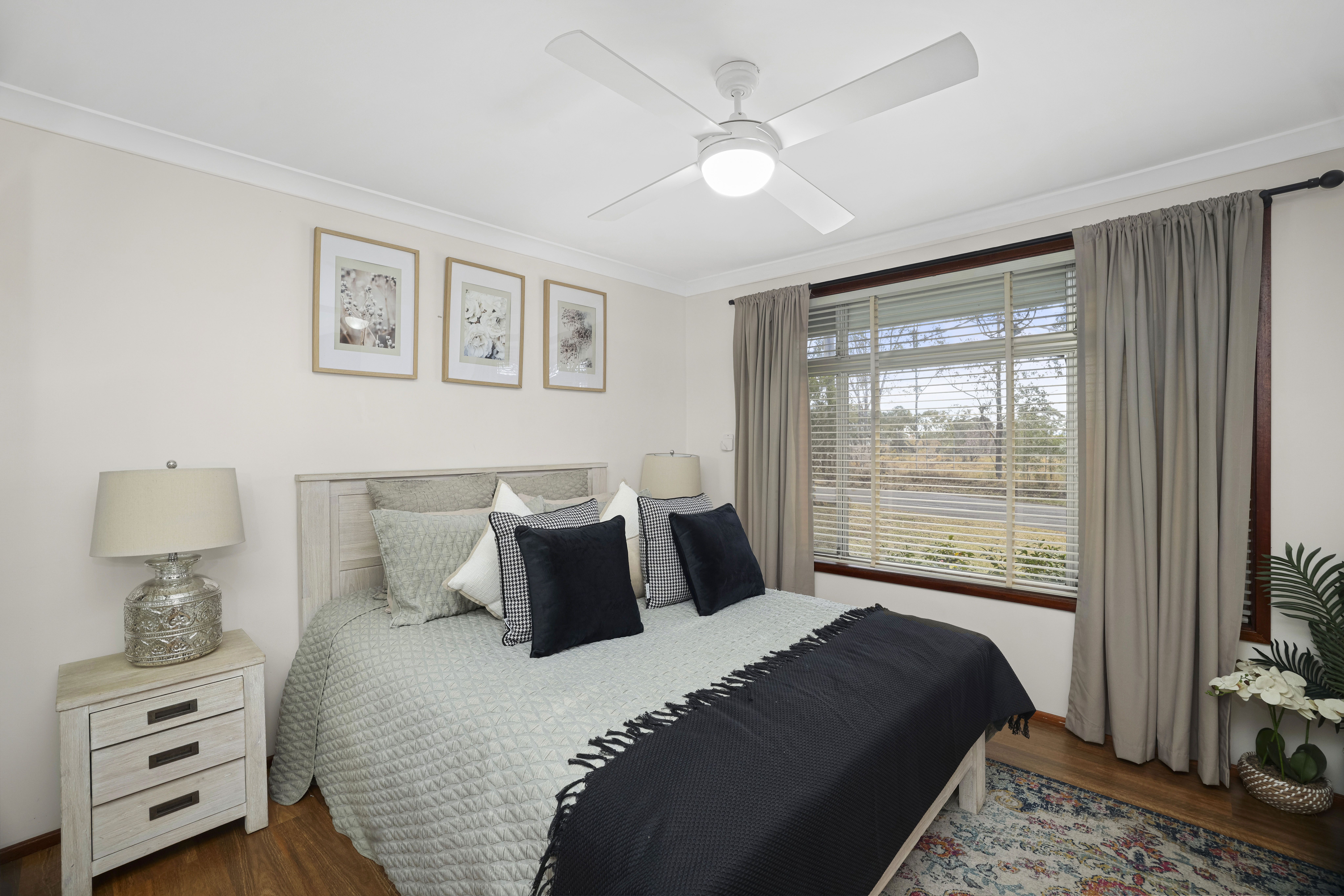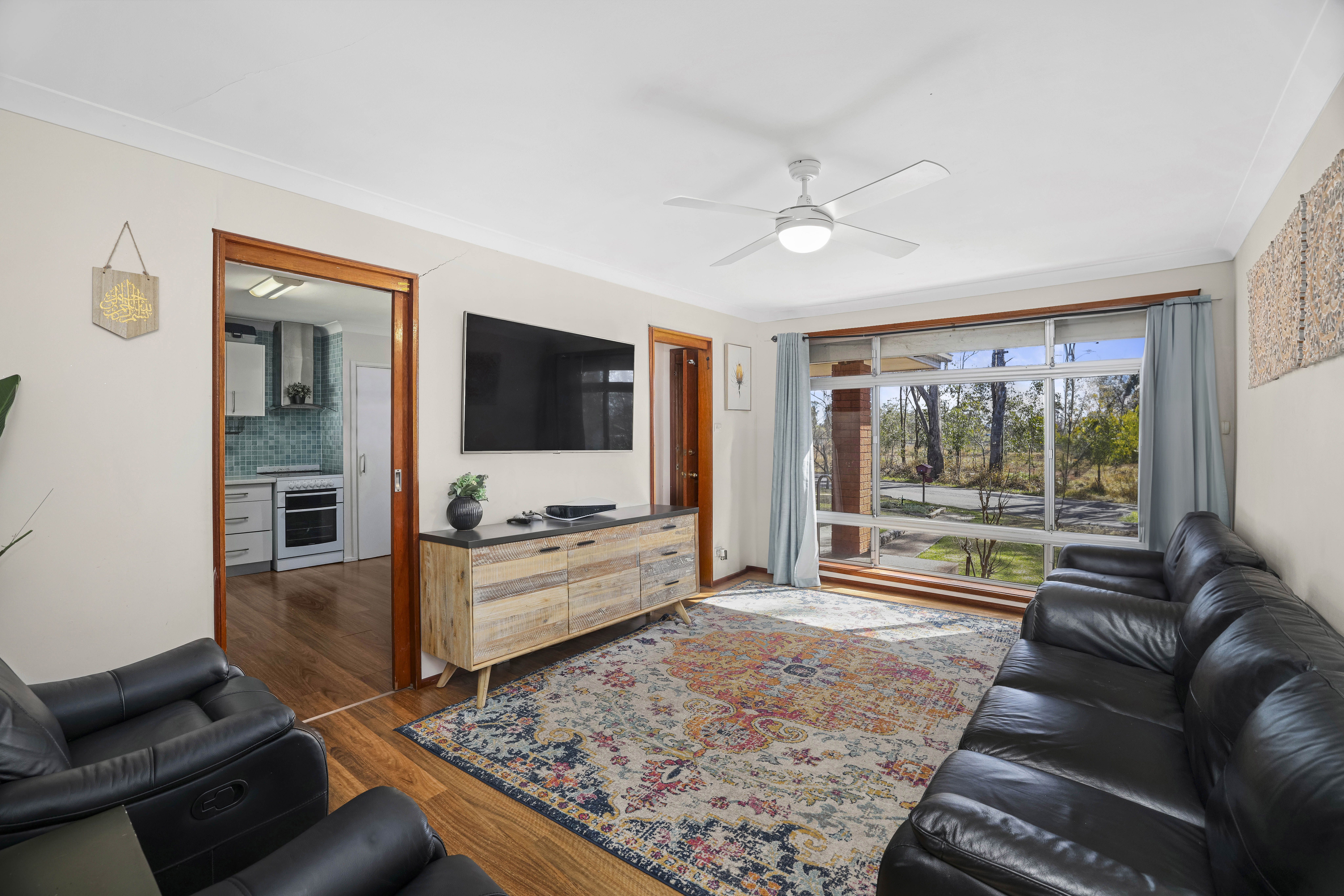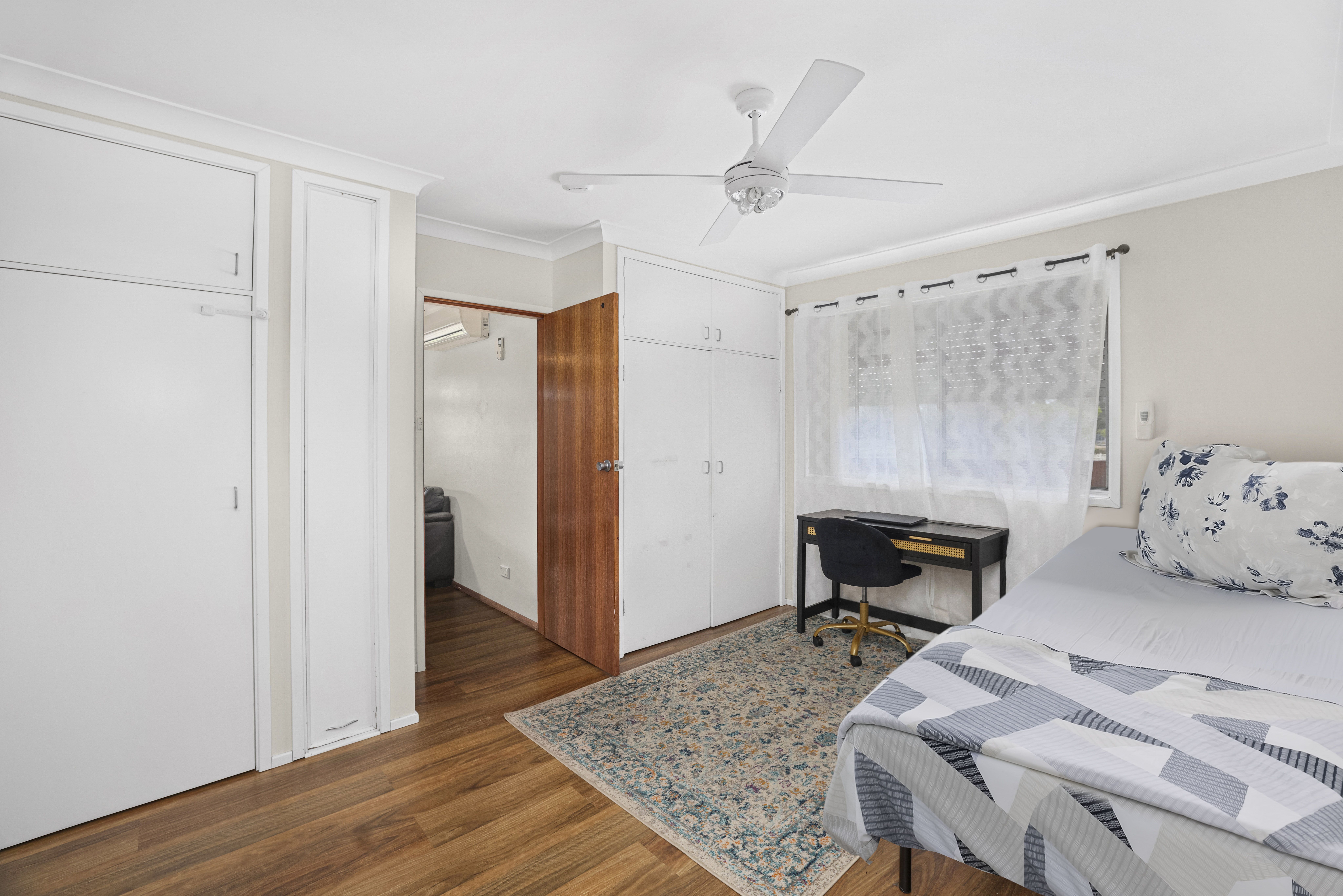 - Five bedrooms with ceiling fans to all, built-in storage to two